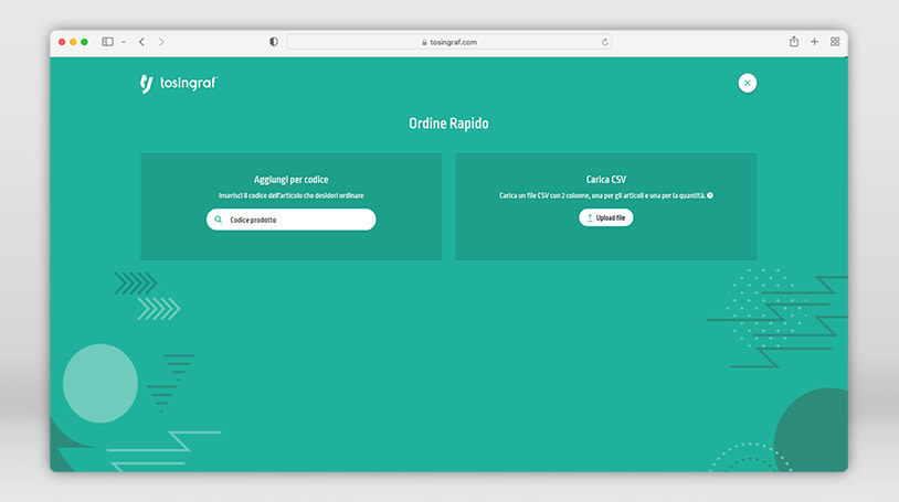 1. Ordine rapido tramite codice prodotto o tramite caricamento di un file .csv